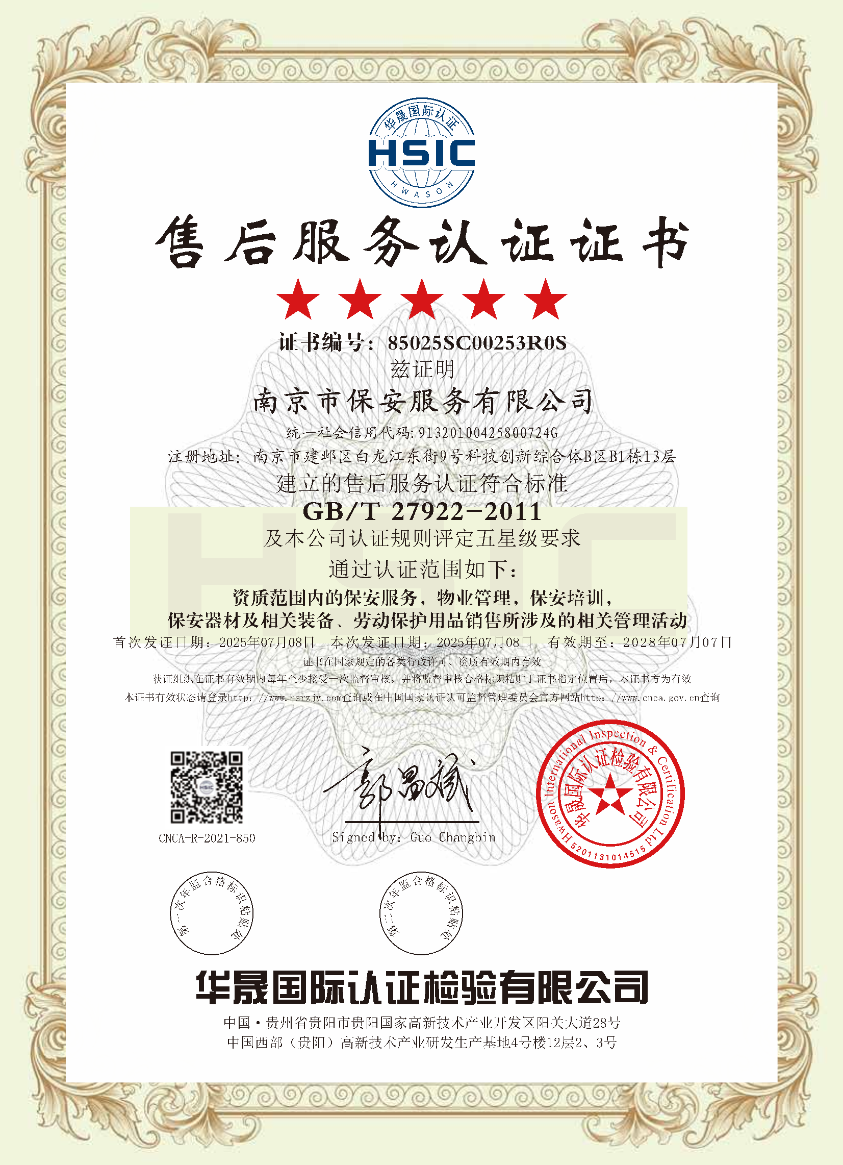 Established in April 1987, Nanjing Security Service Co., Ltd. is a large state-owned security enterprise with a long history of security operation and rich security experience. Now it is a managing director of both? China Security Association and Jiangsu?Security Association, vice president of? Nanjing Security Association, one of the top class security service companies in Jiangsu Province.